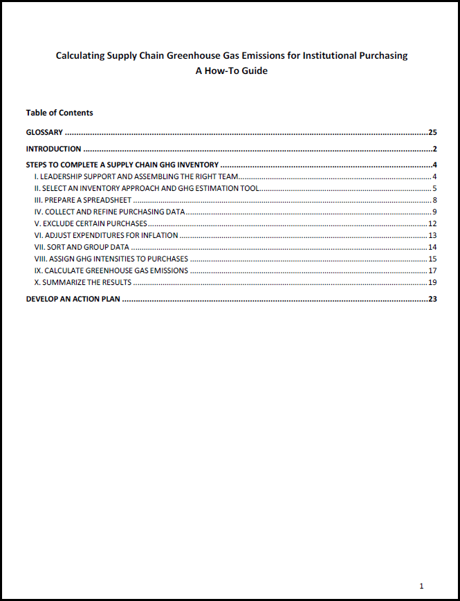 Calculating Supply Chain Greenhouse Gas Emissions for Institutional Purchasing – A How to Guide