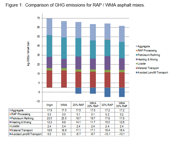 Figure 1:  Comparison of GHG emissions for RAP / WMA (WMAC) asphalt mixes.