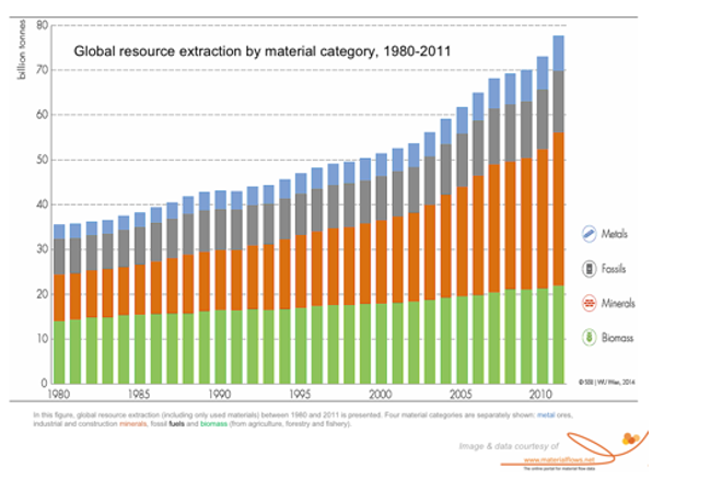 - Resource extraction for the construction and industrial sector has nearly tripled worldwide since 1980
