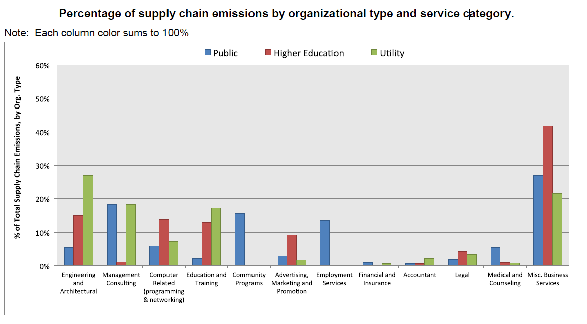 Review the full Trends Analysis report to learn more about the types of professional services that typically contribute to supply chain GHG emissions inventories of government and higher education institutions.